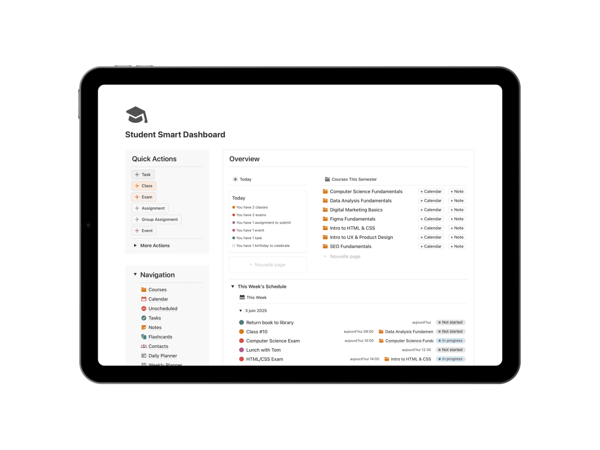 Focus on one course and see all the notes, tasks, assignments, exams, flashcards & events related to it.